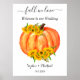 Fall Wedding Welcome banner sign with watercolor orange pumpkin on white background with yellow sunflowers, perfect for fall weddings, autumn weddings, spring rustic country weddings, bridal shower and couples shower.