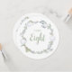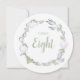 White pumpkin fall Thanksgiving table number cards feature a round wreath border of green watercolor greenery and white trendy white pumpkins, framing your table number in whimsical typography in a pretty sage green colour. Personalise with your names and wedding date or name each table for an extra personal touch. Design repeats on reverse side and is perfect for weddings, bridal showers, gender neutral baby showers or whatever you like. Coordinates with my white pumpkin invitation suite.