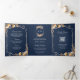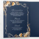 Fall Wildflower Crest Navy Blue QR Code Wedding Tri-Fold Invitation