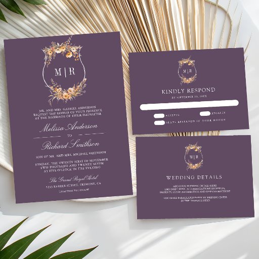 Fall Wildflower Crest QR Code Dusty Purple Wedding Save The Date