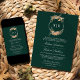Fall Wildflower Crest QR Code Emerald Wedding Invitation
