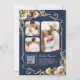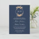 Fall Wildflower Crest QR Code Navy Blue Wedding Invitation