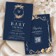 Fall Wildflower QR Code Navy Blue Baby Shower Invitation