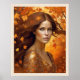 Fall Wind Woman in Orange Leaves Blue Eyes Woman Poster