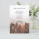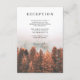 Add your wedding details to your reception with this Fall and winter pine trees forest photo chic wedding with red and orange pine trees showing a wonderland of wood land , with clouds with elegant and modern typography.