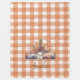 A cute little bear with fall woodland botanicals brings a special charm to this rustic blanket. The gingham background is simple, homey, and cosy, and the autumn colours feel warm. The blanket is personalised with a name in simple script typography.