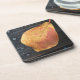 On this Set of Six Coasters is an original photograph by ZoeSPEAK of a sea grape leaf, fallen from a bush onto the wooden boards of a deck, helped along its way by an afternoon shower. The grain of the wood glistens in the wetness, and the nails shine like accent marks. The yellow and orange colours of the leaf stand out against the dark background, accented by a drop of aqua paint.