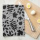 Fallen Leaves Pattern Black on Grey Tea Towel