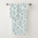 Fallen Leaves Pattern Lt Teal on White Bath Towel Set
