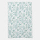 Fallen Leaves Rpt Pattern Lt Teal on White Tea Towel