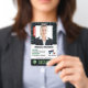 Medium sized vertical employee ID badge for your cyber security department, with a falling code background in green, cyan, and blue. Security is written at the bottom of the badge with a shield with a keyhole next to the text. Customize the security ID badge with name, title, department, ID number, issue date and expiration date, and logo. On the back, there's a QR code and additional customizable text.