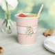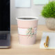 Serve your beverages in style with this Falling in Love with Baby paper cup, designed for a cosy and elegant fall baby shower. Featuring a soft pink background, an ivory stripe bordered by rustic terracotta accents, and lush watercolor florals of blush roses, eucalyptus leaves, pheasant feathers, pampas grass, and autumn greenery, this cup blends rustic charm with refined details. Customisable text makes it perfect for personalising with the baby’s name or a special message. Coordinates seamlessly with the Falling in Love event suite for a beautifully matched tablescape.