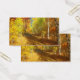 An overgrown path meandering through the birch forest on a sunny autumn day. The black and white trunks of the trees contrast with leaves and grass in all shades of gold, from pale yellow to deep orange, lit by the sun rays streaming through the branches.