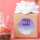Falling Purple Glitter, 80th Birthday Thanks, are glamourous Classic Round Stickers for her. These personalised Thank You Favour Stickers are elegantly drawn and designed to show appreciation towards your guests.