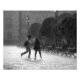 Black and white photo of couple in the rain, downtown Leon, Guanajuato, Mexico.