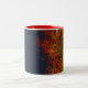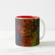 Looking up through the branches of a towering tree in autumn. The falling leaves of burgundy, red, gold, orange, yellow, and blue sparkle against the deep blue sky.