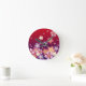 Falling Sakura Blossoms Japanese Red & Purple Round Clock