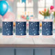 Stylish can glass set features beautiful night sky dark blue celestial background with falling silver stars.  Customise with name or other special message.  Perfect for wedding party gifts, birthdays, graduations and more.