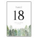 Falling Snow on Evergreen Forest Winter Wedding Table Number