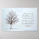 This poster depicts a snowy scene and a bare tree in the dead of winter, representative of a scene from Chelsea Vanderbeek's "Forget Me." It includes a quote from the mentioned novella: "I looked on at the falling snow that accumulated on the near-naked tree branches one flake at a time, staring at the emptiness of it all."