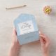 We absolutely loved how these wedding invitations turned out! We went with the standard paper stock, and it is plenty thick. One thing we probably would have changed is not doing the big white block on the front for the recipient address. Our invitations are a dark green. When we went to Staples to look at the options for labels, we saw some cute kraft stock colored ones that would have looked really cute on the dark green rather than using matte clear labels within the white block if that makes sense. They are still adorable though. I just fancied up my matte labels with a little leafy design and pretty font for the names so I feel like it helped it look more cohesive. Also, if you’re worried that they look pricey, make sure to put your quantity in because the price goes down significantly. We found this to be a super affordable, efficient and unique option that checked all of our boxes. When folded, they are the size of a little Google home screen see pictures. Perfect! Colors look exactly as we expected and the printing quality is clear and consistent.