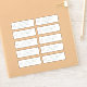 Individual address label stickers with falling starfish design. Champagne colour with light blue calligraphy font to hold three or four lines as needed. Each guest’s name and address can be added. Use to mail ceremony invitations, shower invitations, and thank you cards. These labels come on various size sheets, so choose the size that gives you the correct label size for your needs. Estimated size of each label on the 6x6 sheet is 2.5 inches long by 1 inch tall.