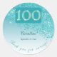 Falling Teal Blue Glitter, 100th Birthday Thanks Classic Round Sticker