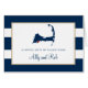 Map of Dark Blue Cape Cod with Blue and White stripes and Light Gold border. Red heart over Falmouth, Massachusetts. Perfect for your Wedding Thank You cards. For enquiries about custom design changes by the independent designer please email paula@labellarue.com BEFORE you customise or place an order.