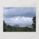 Take in the breathtaking beauty of Falmouth, Jamaica with this panoramic postcard, captured from a lush mountain overlook. The scene features a majestic cruise ship docked in port, framed by towering tropical trees and set against the shimmering Caribbean Sea beneath dramatic island skies.