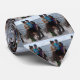 Men's necktie with photo collage in blues and greys.
