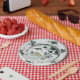 Antique famille verte porcelain floral crane, deer and flowers chinoiserie ginger jar pattern Palm Beach season paper plates.
