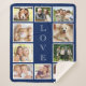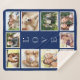 Family 10 Photo Collage Navy Blue Sherpa Blanket