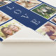 A navy blue photo collage keepsake blanket that you can personalise with 10 family photos in white frames. "LOVE" is written down the middle in elegant white text.