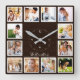 Family 12 Photos Collage Dark Brown Wood Square Wall Clock