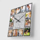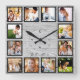 Family 12 Photos Collage Farmhouse Rustic Wood Square Wall Clock
