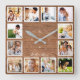 Family 12 Photos Collage Farmhouse Rustic Wood Square Wall Clock