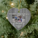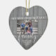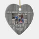 Celebrate your joyful 1st holiday together with a custom 2 photo "Our First Christmas as a Family" heart-shaped ceramic ornament. All text and images on this template are simple to personalize. (IMAGE PLACEMENT TIP: An easy way to center a photo exactly how you want is to crop it before uploading to the Zazzle website.) The modern farmhouse design features a stylish gray rustic faux wood border, handwritten style script calligraphy names & year, and two pictures of your choice. This unique keepsake adds an elegant touch to a blended family's Xmas home decorations. It's also perfect for a new stepmom or stepdad after a marriage; or a new child joining a family due to foster care, adoption, or birth of a couple's first baby.