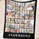 Family 33 Photo Collage Personalized Name Black Fleece Blanket