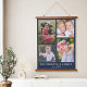 Elegant family keepsake dark blue hanging tapestry featuring a 4 photo collage and your name and year established in modern white typography.