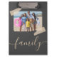 DIY Make Your Own Family personalised clipboard from Ricaso - change the five photos to your own, one on the front and four on the back 'held on' my a fun tape detail - designed with a flowing script typography (also available in other colours in store)