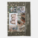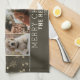 Family 6 Photo Collage Snowflakes Merry Christmas kitchen towel. Cute modern Christmas design with a snowflake pattern on dark brown background, 6 photos, Merry Christmas wish, family name and year. Add 6 favourite photos and customise the text. Sweet Christmas keepsake or gift for your family and friends.