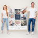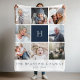 Family 8 Photo Collage Monogram Navy Blue Fleece Blanket