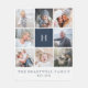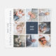 This keepsake fleece blanket features a collage of eight of your favourite family photos on a white background. Add your family's name and establishment date or other text at the bottom in navy blue open serif font. The centre square features your family's monogram initial in white open serif font on a navy blue background.