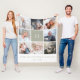 Family 8 Photo Collage Monogram Sage Green Fleece Blanket