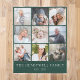 This keepsake fleece blanket features a collage of nine of your favourite square family photos on an emerald green background Add your family's name and establishment date or other text at the bottom in white serif font.