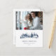 Christmas winter village landscape blue white Annual Family Report One Photo Postcard. Elegant Merry Christmas Annual Family Report in a classic style featuring monochrome winter landscape in navy blue and white colours. Stylish and elegant design. One photo.