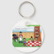 Family BBQ, Single Dad, 2 Boys, 1 Girl Cartoon Key Ring