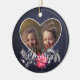 A beautiful family photo keepsake ornament with blessings script and seasonal watercolor silver grey foliage with holy berries and pink poinsettia flower over a dark midnight navy blue chalkboard background. ++++++++++ Personalise it with 1 or 2 photos inside a heart shape and with your name on the reverse. +++++++++++ It can make a thoughtful Christmas winter holiday gift for your family, parents, or grandparents.