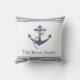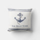 Family or Boat Name White & Navy Blue Anchor Rope Nautical outdoor pillow