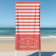 Family Boat Nautical Anchor Personalised Coral Beach Towel. This custom design features a nautical anchor design with stripes. Personalise with your own family name, text and year.